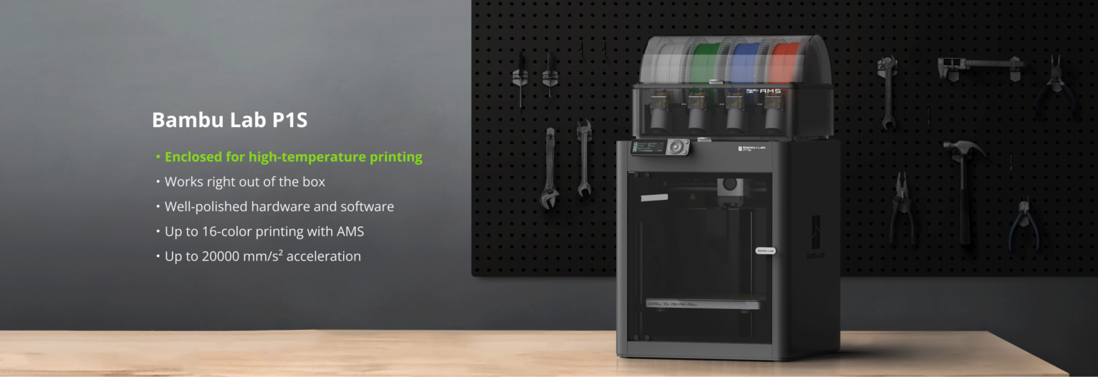 Experience effortless 3D printing with the Bambu Lab P1S. This printer sets up in just 15 minutes, boasting a well-polished design and software for seamless operation. Its enclosed body supports high-temperature filament printing, while the AMS enables up to 16-color printing. With up to 20,000 mm/s² acceleration, enjoy rapid printing without compromising quality. Plus, monitor your prints remotely with the built-in camera and Bambu Studio integration.